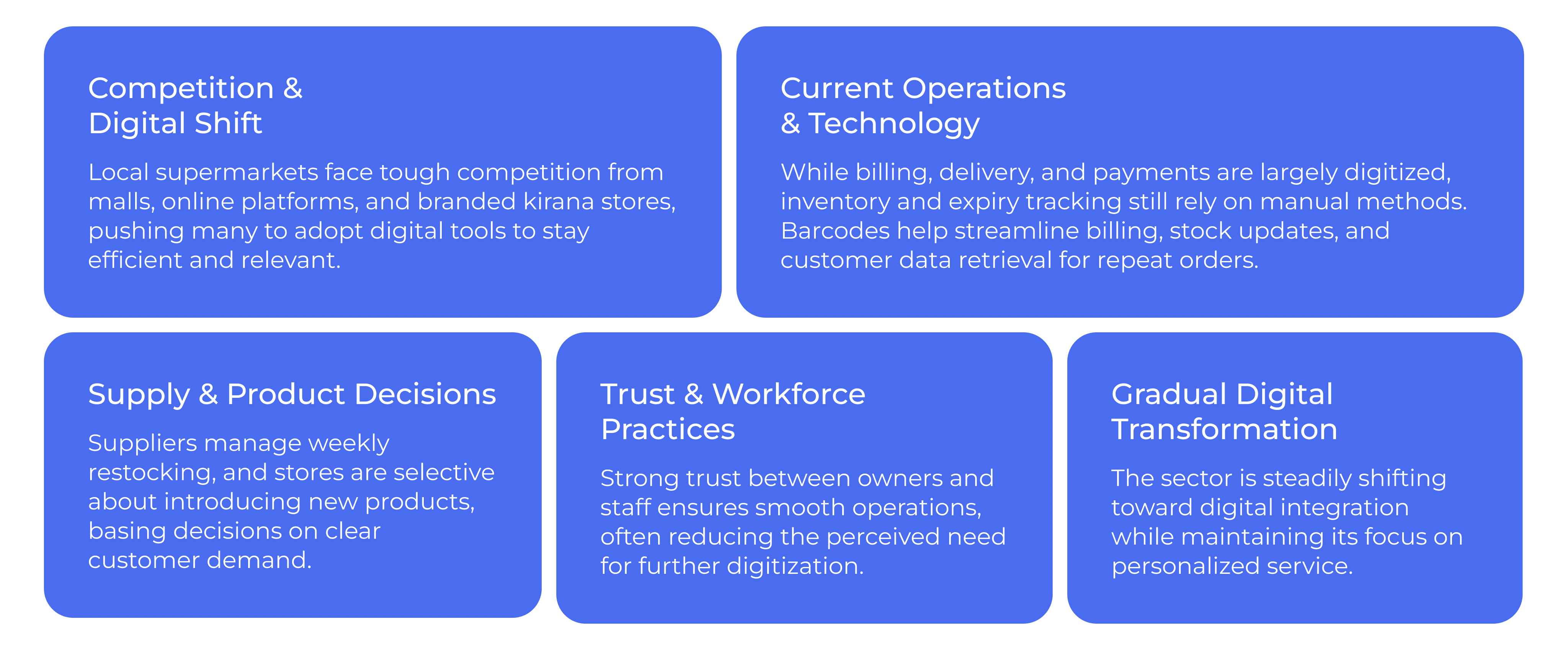 To understand the situation better, we went to 5 local supermarkets to take interviews and observe how they operate.