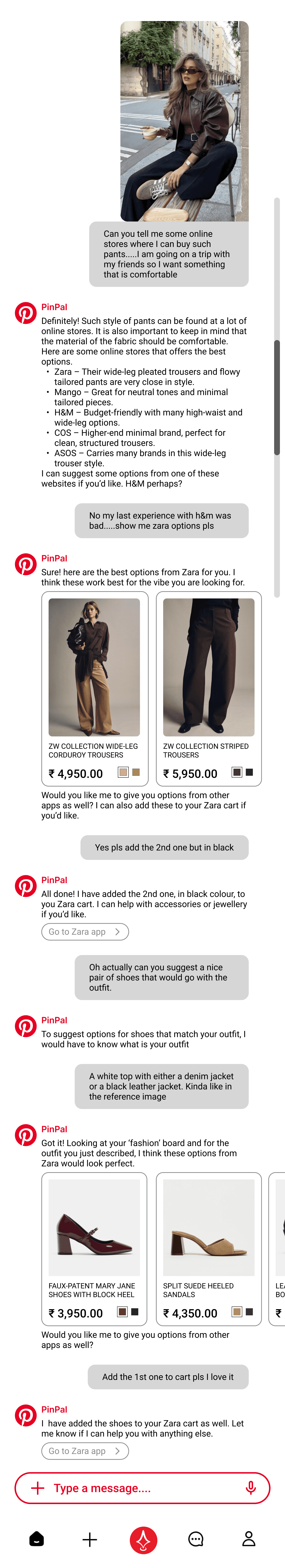 When the shopper needs help in finding clothes for a trip and asks PinPal directly from explore page