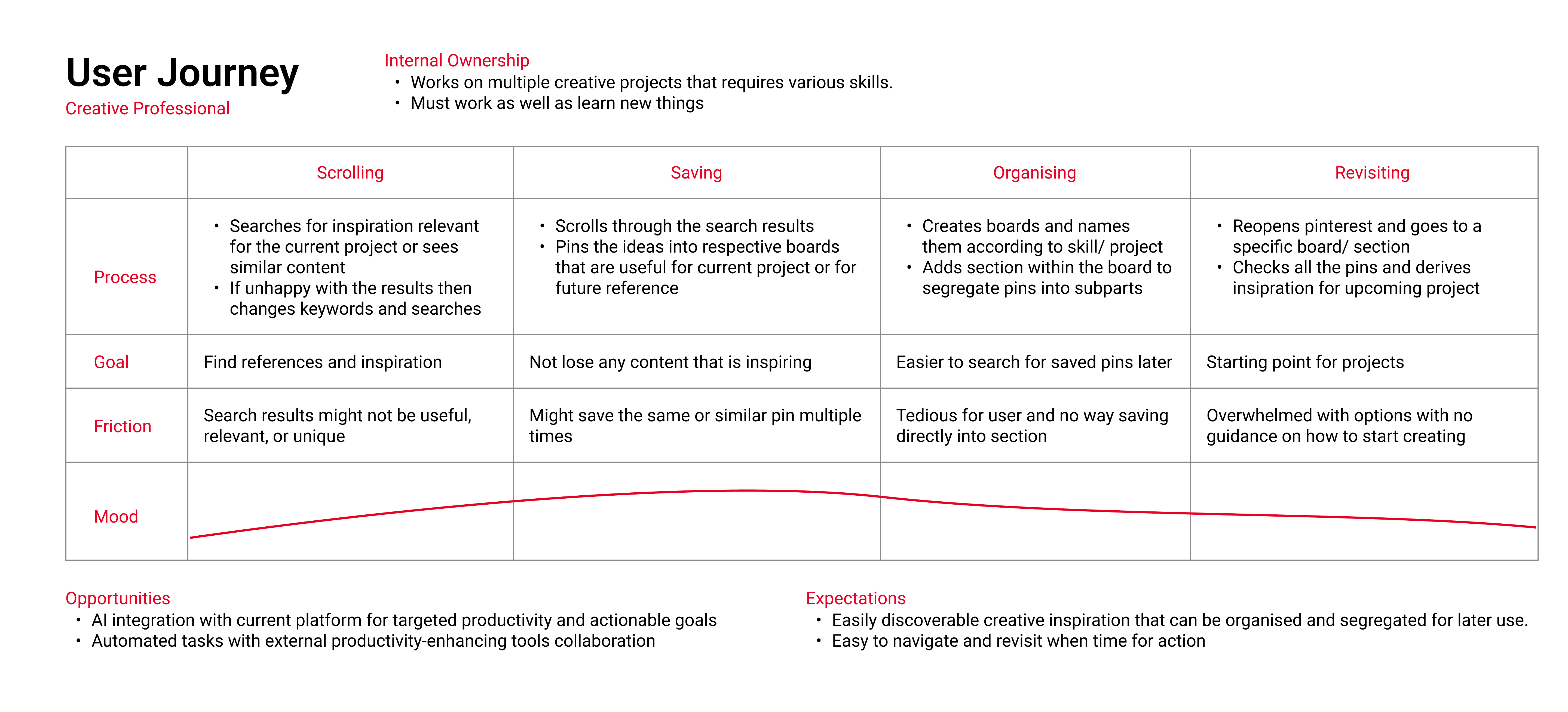 People seeking inspiration often end up scrolling endlessly on Pinterest, saving pins without a clear purpose.