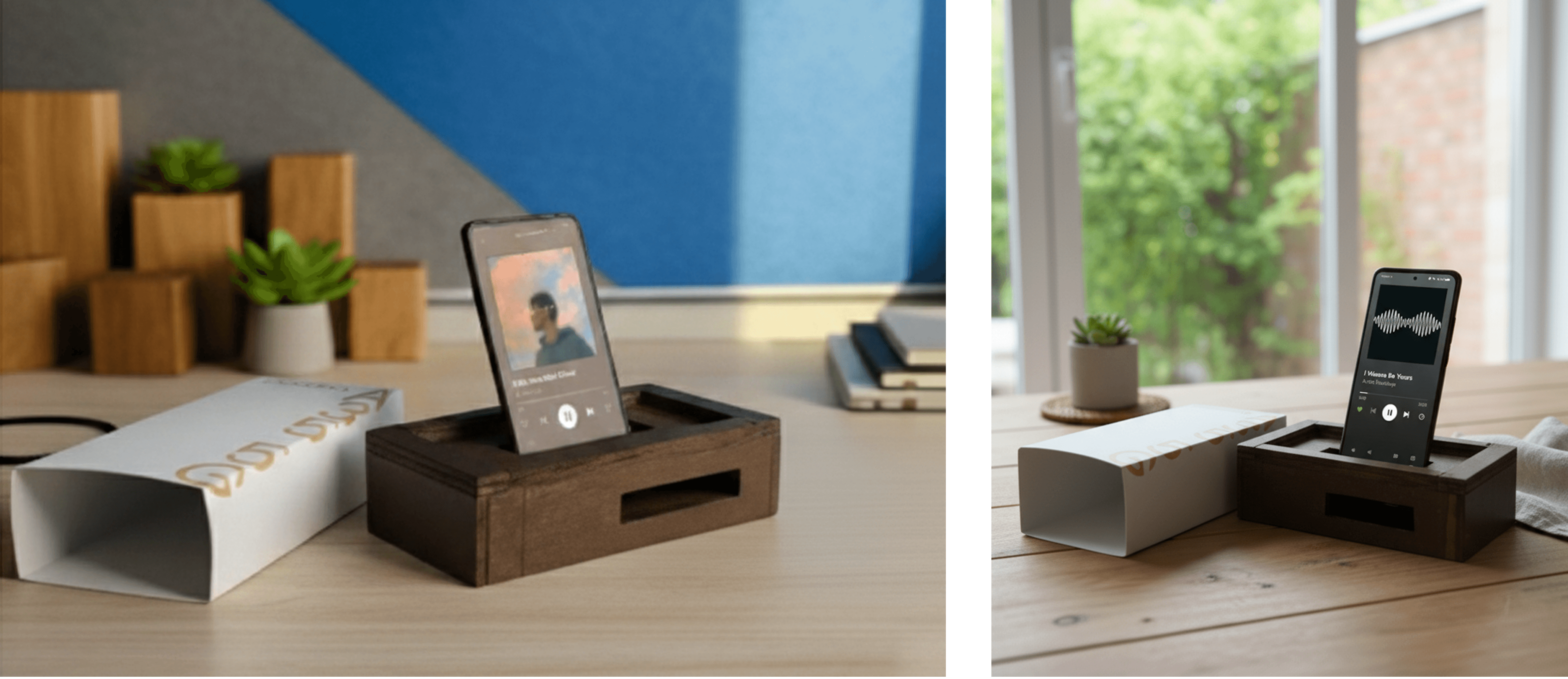 Making reusable sustainable phone boxes that can be used as a passive speaker and phone stand.