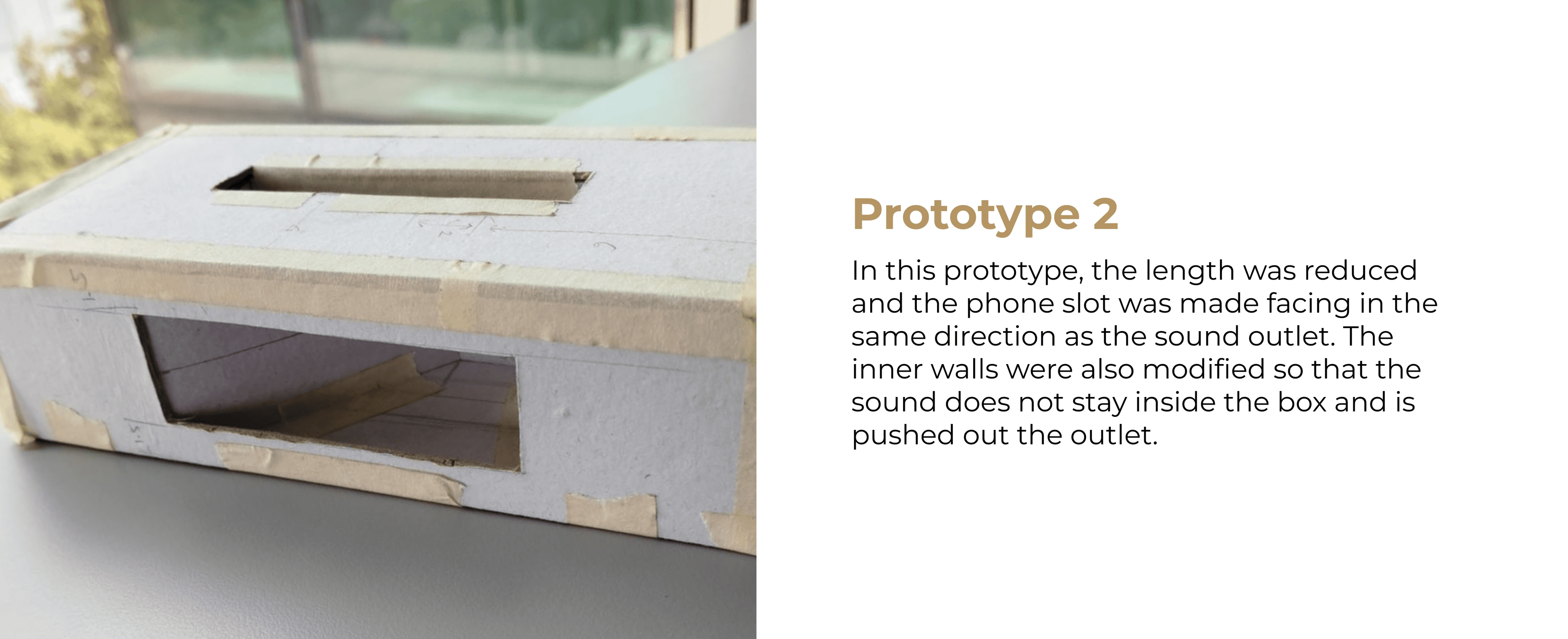 To understand the best box design, it was necessary to understand the acoustics of it while keeping in mind the functionality of a phone box. For this, prototypes were made and tested.